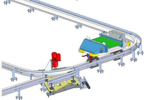 1、產品功能多臺單軌車和軌道組成地面環形單軌RGV系統,單軌車由支撐在軌道上的行走輪和地面輔助支撐輪以及輸送裝置等組成,...