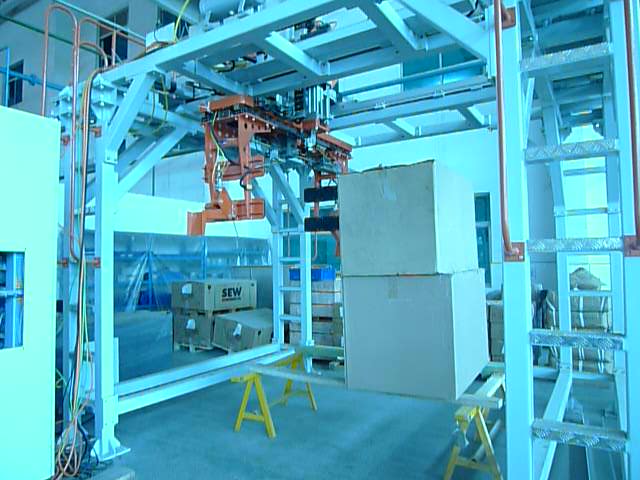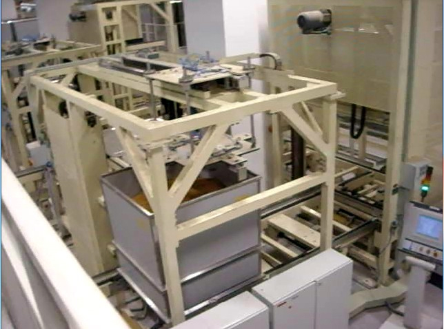 周轉箱碼分機1.主要功能周轉箱碼分機是一種用于煙絲箱式存儲自動化物流系統中,完成兩個煙絲箱的疊箱或者分箱操作的設備。2....